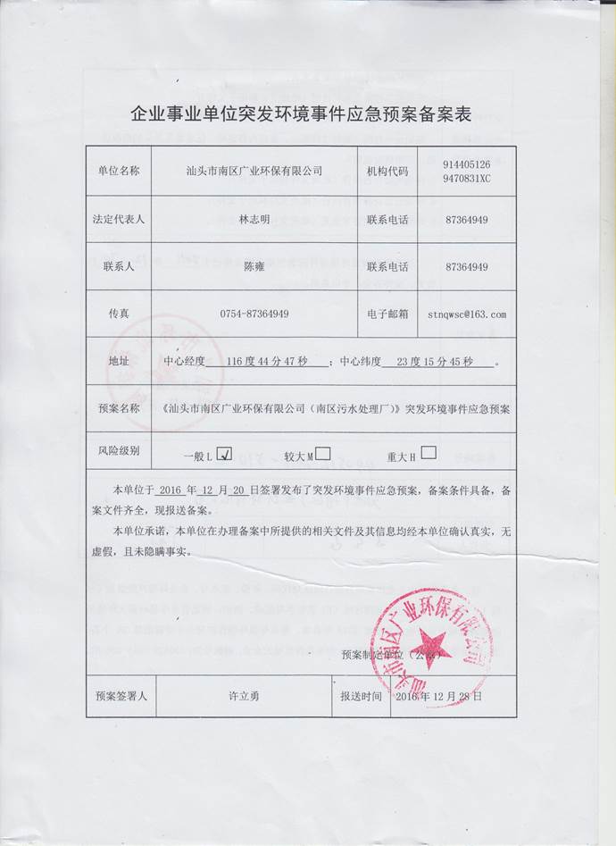 1、單位名稱: 汕頭市南區(qū)廣業(yè)環(huán)保有限公司