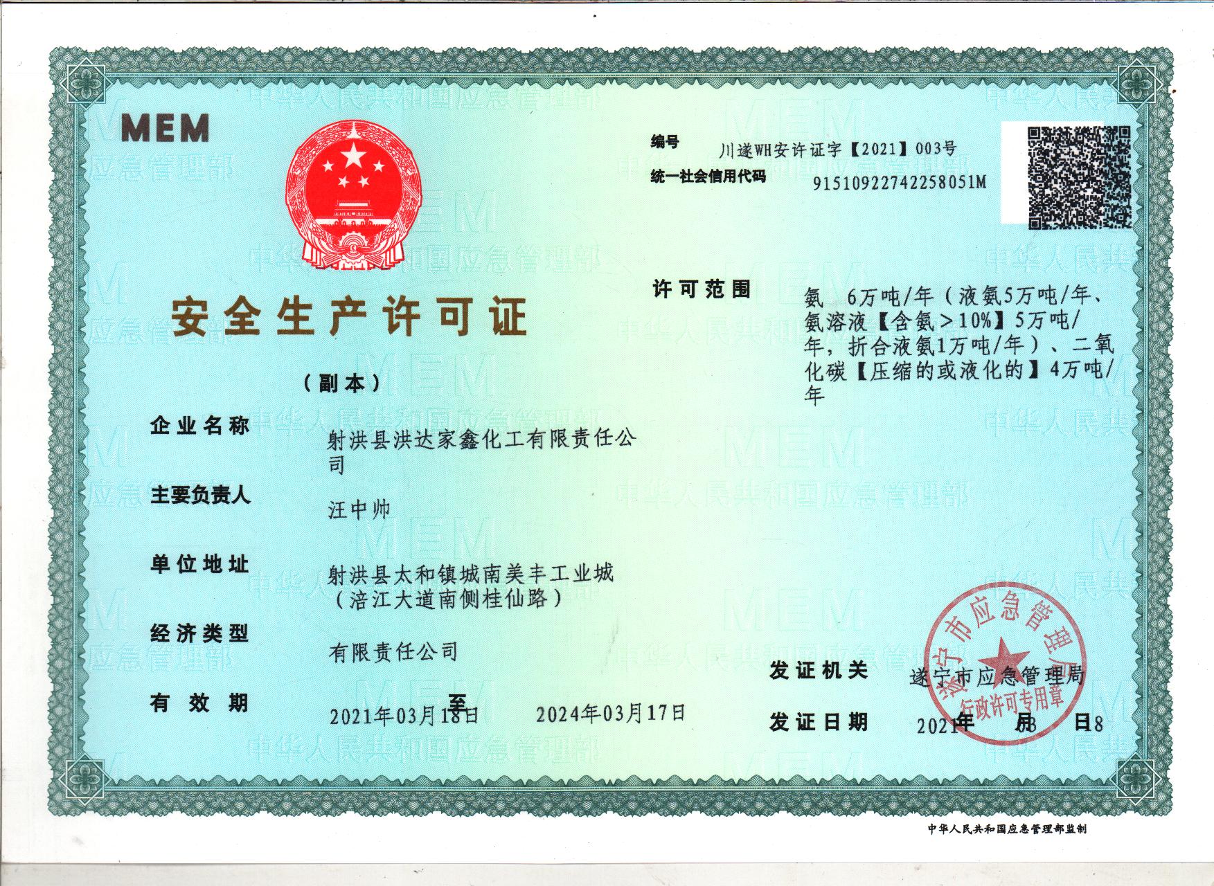 4、附件鏈接: 射洪縣洪達(dá)家鑫化工有限責(zé)任公司化工安全生產(chǎn)許可證》電子版(點擊打開)
