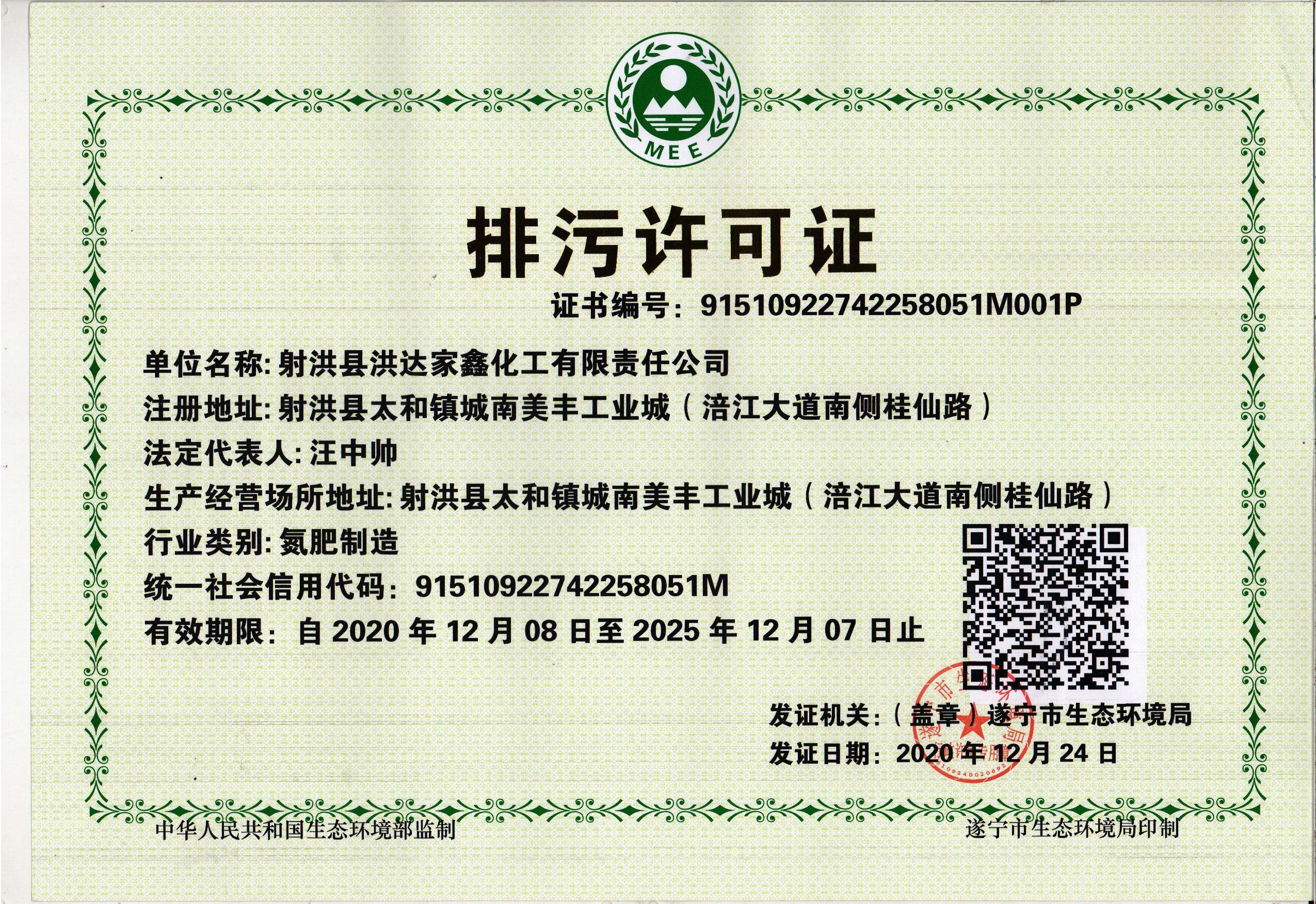 5、附件鏈接: 《射洪縣洪達(dá)家鑫化工有限責(zé)任公司排污許可證》電子版(點擊打開);